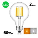 全方向白熱電球のように光が広がるのLEDフィラメント電球LEDフィラメント電球 調光対応 エジソン電球 LED電球 60W相当 E26 クリアタイプ 全方向型 LED透明電球 ledクリア電球 電球色 昼光色 2個セット