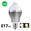 人間の動きを感知した時だけに自動的に点灯/消灯する人感センサー付きLED電球。消す忘れ、節電や防犯に役立つ。LED電球 人感センサー E17口金 7W 50W相当 自動点灯消灯 節電対策 電球色 昼光色
