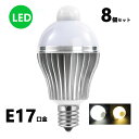 人間の動きを感知した時だけに自動的に点灯/消灯する人感センサー付きLED電球。消す忘れ、節電や防犯に役立つ。LED電球 人感センサー E17口金 7W 50W相当 自動点灯消灯 節電対策 電球色 昼光色 8個セット