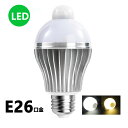 人間の動きを感知した時だけに自動的に点灯/消灯する人感センサー付きLED電球。消す忘れ、節電や防犯に役立つ。LED電球 人感センサー E26口金 7W 50W相当 自動点灯消灯 節電対策 電球色 昼光色