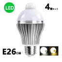 人間の動きを感知した時だけに自動的に点灯/消灯する人感センサー付きLED電球。消す忘れ、節電や防犯に役立つ。LED電球 人感センサー E26口金 7W 50W相当 自動点灯消灯 節電対策 電球色 昼光色 4個セット