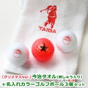 名入れ ゴルフボール 贈り物 ギフト プレゼント 記念品 クリスマス サンタ 父の日 母の日 誕生日 ラッピング キャスコ kasco 紅白 退職祝いギフト2点セット/ クリスマス Ver. 今治タオル (刺しゅう入り)+ 名入れ カラー ゴルフボール 【白】2個【赤★】1個(計3個)セット/クリスマス限定刺繍入りの今治タオル&名前が入れられるゴルフボールとのセット商品/ゴルフをするサンタの刺しゅう / メッセージカード可