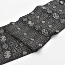 “モール織”と幾何学文様のハーモニー 墨色の重すぎない地色の魅力! 紬のお着物と相性良し♪西陣織 名門 芳彩織 謹製 幾何学文様 九寸 名古屋帯 正絹 日本製【帯専門店おびや】お仕立て代込!送料 代引き無料![商品番号21927]