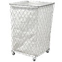 麻袋付きワイヤーバスケット キャスター付き ランドリーバスケット 収納かご ヘンプ ショップディスプレイ お洒落収納 シャビー家具 シャビー雑貨 北欧 レトロ モダン 1015(小)