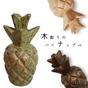 木彫りのパイナップル 置物 オブジェ ナチュラル ブラウン グリーン 北欧 マリン 西海岸 アンティーク雑貨 ヴィンテージ/18016