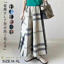 大人可愛い スカート大柄なチェックが目を惹く抜群のスカート♪激安【赤字覚悟】新作パンツ秋 レディースパンツ秋 レディースリネンパンツ 秋パンツ 綿麻パンツ秋 大人パンツ ゆるパンツ 体型カバー レディースワイドパンツ秋 チェック柄パンツ ゴムウエスト レディースキュロットパンツ 通勤 通学 合わせやすい お出かけ 日常デート