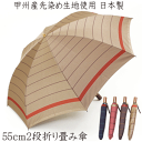 甲州産先染め 生地を使用した 上品な婦人2段折り畳み傘 レディース 国産品 made in japan55cm 8本骨 2段 折りたたみ傘 市松模様総柄 ボーダー 甲州織 婦人傘 082[日本製]ギフト[送料無料一部地域を除く]