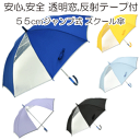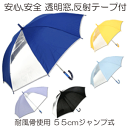 夜間のお出かけに 安心・安全な 反射テープ付 ワンタッチ 子ども傘 キッズ kasa 男の子 女の子 小学生 通学【子供長傘】55cm グラスファイバー ジャンプ式 前が見えます2駒 透明窓付き 反射テープ付 スクール傘 [黄色 紺色 子供かさ]【送料無料一部地域を除く】