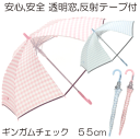 夜間のお出かけに 安心・安全な 反射テープ付 ワンタッチ 子ども傘 キッズ kasa 女の子 小学生 通学【反射テープ ギンガムチェック】55cm グラスファイバー ジャンプ式 前が見えます2駒 透明窓付き 子供かさ 【送料無料一部地域を除く】