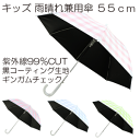 子供用 日傘 晴雨兼用傘 紫外線99%CUT、遮光率99.99% 子ども傘 キッズ kasa 女の子 小学生 通学[子供用 雨晴れ 晴雨兼用傘 ]55cm グラスファイバー ジャンプ式 黒コーティング生地 ギンガム チェック [雨晴れ兼用傘 ]【送料無料一部地域を除く】