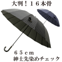 高級感溢れる65cmサイズ 大判傘 メンズ16本骨の先染めチェック柄。グラスファイバー骨仕様で耐久性に優れています。【大判 16本骨傘】65cm ジャンプ式 グラスファイバー 紳士傘 メンズ傘[先染め格子]父の日 ギフト【送料無料 一部地域を除く】