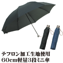 通勤・通学、置きかさに携帯に便利な3段 テフロン加工 メンズ レディース 折りたたみ傘60cm 8本骨 軽量 3段 折りたたみ傘 紳士 無地 テフロン加工 ミニ傘[グラスファイバー]ギフト【送料無料 一部地域を除く】
