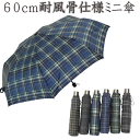 深い色合いの先染め生地使用のグラスファイバー骨仕様のレディース・アンブレラです。【送料無料 一部地域を除く】60cm グラスファイバー ジャンプ式 [婦人 先染チェック柄]