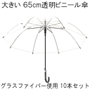 燃やしても有害なダイオキシンを発生させない 低公害生地 POE使用 丈夫な 透明傘。65cm大きめサイズの 丈夫な ワンタッチ・ジャンプ式[大きい ビニール傘]65cm 8本骨 ジャンプ式 グラスファイバー 低公害生地 透明傘[10本セット POE]【送料無料 一部地域を除く】