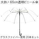 燃やしても有害なダイオキシンを発生させない 低公害生地 POE使用 丈夫な 透明傘。65cm大きめサイズの 丈夫な ワンタッチ・ジャンプ式[大きい ビニール傘]65cm ジャンプ式 グラスファイバー骨 低公害生地 透明傘[20本セット POE]【送料無料 一部地域を除く】