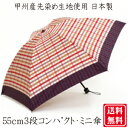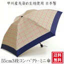 甲州産先染め生地を使用した 上品な婦人3段コンパクト 軽量ミニ傘 折り畳み傘 レディース 国産品[甲州先染め 市松模様]55cm 6本骨 軽量ミニ傘 婦人折りたたみ傘 [日本製]【送料無料 一部地域を除く】