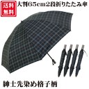 通勤・通学に便利 先染めチェック柄 大判 折りたたみ傘。しなやか 丈夫な グラスファイバー アルミ軽量骨 通勤【送料無料 一部地域を除く】65cm 8本骨 大判サイズ 軽量 先染格子 2段 紳士折りたたみ傘[メンズ 先染め格子]敬老の日 ギフト