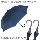 カジュアルでもビジネスシーンでも活躍する 丈夫な グラスファイバー骨仕様の大判サイズ 大きい ビッグ メンズ アンブレラ[千鳥格子パイピング]70cm サイズ ジャンプ式 グラスファイバー骨 大判 紳士長傘 無地 ブラック ネイビー ギフト【送料無料 一部地域を除く】