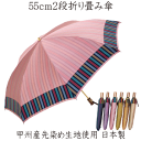 甲州産先染め 生地を使用した 上品な婦人2段折り畳み傘 レディース 国産品 ジャパン made in japan[送料無料一部地域を除く]55cm 8本骨 2段 折りたたみ傘 裾ストライプ柄 甲州織 婦人傘 081[日本製]ギフト