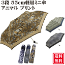 通勤・通学、置きかさに携帯に便利な軽量3段 折りたたみ傘 アニマル柄 レディースミニ傘【送料無料 一部地域を除く】55cm 6本骨 婦人 軽量コンパクトミニ傘【アニマル柄】