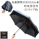 開く閉じるが片手ででき 車の乗り降りなどが便利です メンズ レディース 安全式 ジャンプ式 折りたたみ傘 オート 自動車 乗降【自動開閉傘 3段 折りたたみ傘】58cm 7本骨 ストライプ柄 紳士傘 グラスファイバー耐風骨 テフロン加工【耐風傘】ギフト【送料無料 一部地域を除く】