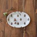 | 九谷青窯 鉄絵小枝 楕円平皿 モミの木