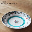 モダンでレトロな器中田窯 8寸リム皿 灰釉 加彩 A| 大皿 デザート サラダ パスタ カフェ おしゃれ かわいい 砥部焼 和食器 磁器 日本製 作家もの