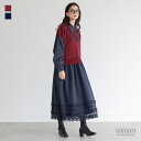 選べるサイズ S M L LL XL 3L XXL シンプル 大人カジュアル きれいめ 上品 ラフ フェミニン 着回し レトロ クラシカル ガーリー ボルドー レッド 赤 ネイビー 紺【全品最大15%OFF 11/15 23:59迄】【送料無料】ワンピース 長袖 レディース ドレス ロングワンピース シャツワンピース チルデン ニットベスト ドッキング レース 綿混 ゆったり 体型カバー 秋 冬 オシャレウォーカー【メール便不可】【40】