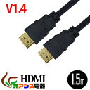 【5,000円以上全商品送料無料】hdmiケーブルhdmiケーブル 1.5m (相性保証付 NO:D-D-2) 4kテレビ対応ハイスペックHDMIケーブル ハイビジョン 3D映像 (2.0規格) イーサネット対応 HDTV (1080P) 対応 金メッキ仕様 PS3対応 各種AVリンク対応Donyaダイレクト メール便対応