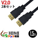 【5,000円以上全商品送料無料】hdmiケーブル 1.5m 【2本セット】 ( 相性保証付 NO:D-D-2 ) 4kテレビ対応ハイスペックHDMIケーブル ハイビジョン 3D映像 2.0規格 イーサネット対応 HDTV 1080P 対応 金メッキ仕様 PS3対応 各種AVリンク対応Donyaダイレクト メール便対応 メール便送料無料