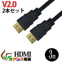 【5,000円以上全商品送料無料】HDMIケーブル hdmiケーブルhdmiケーブル 3m 【2本セット】 (相性保証付 NO:D-D-4) HDMIケーブル 4kテレビ対応ハイスペックHDMIケーブル ハイビジョン 3D映像 (2.0規格) イーサネット対応 HDTV (1080P) 対応 金メッキ仕様 PS3対応 各種AVリンク対応Donyaダイレクト メール便対応 qq