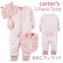 カーターズCARTER'S3ピースセット長袖カバーオールスタイ帽子セット50607080前開きご出産祝い女の子用《白ホワイト×ピンク》カーターズ カバーオール足なし スタイ 帽子 3点セットアップ Carter's 長袖 パイル/タオル地 3m6m9m12m 御出産祝にも