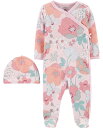 Carter's カーターズ正規品綿コットン100%柔らかな肌触り足付長袖カバーオール前開き赤ちゃんベビー服506070ピンクフラワーカーターズ 長袖 カバーオール 足つき と 帽子 正規品 Carter's 2点セット 綿 3m6m9m 前開き お花柄 50 60 70 ピンク