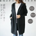 【再入荷】カーディガン アウター 羽織り レディース ブラック 春 秋 冬 長袖 袖リブ ニット 着回しパーカーニットカーディガン 10/23