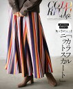 スカート ニット レディース グレー 春 秋 冬 フレア ミドル ミモレ ストライプ トリコロール エレガント カジュアル きれいめ すっきり隠せて細見え叶う!?ストライプニットスカート 9/25★★
