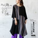 トップス 装いを主役級に格上げ タイ付きオリエンタル柄チュニック エスニック 薄手 長袖 ワンピース 膝丈 ボウタイ スカーフ オケージョン 旅行 お出掛け 細魅せ効果 春 夏 秋 冬 ブラック 10/30