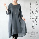 OTONA 40代 50代 60代 レディース 体型カバー ゆったり メッシュ 透け感 リラックス メール便不可ワンピース メッシュで涼しく しっかり上品 頼れるバルーン袖ワンピ 7分袖 シアー 涼しい ミドル丈 低身長 落ち感 シワになりにくい 旅行 春 夏 秋 春 夏 グレー 8/1##11