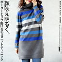 トップス ニット レディース カーキグリーン 秋 冬 長袖 パーカー ボーダー柄 アシンメトリー 切り替え ゆったり 暖か 色で仕掛ける渋カワボーダーニット 10/21[10]