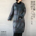 ワンピース ニット チュニック丈 切り替え ボトルネック幾何学模様 暖かい セーター スッキリ見え 着回し 長袖 雰囲気ツクルMIX柄 ニットチュニックワンピース ブラック 秋冬 秋 冬 クール 12/21