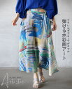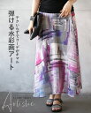 【再入荷1月25日10時より】スカート ボトムス フレア シアー アートな色彩が揺れる。大人のニュアンススカート。 幾何学模様 モダン ロング丈 薄手 ドレープ 着映え ゆったり 総ゴム マルチカラー 春 夏 秋 春夏 6/24[1.5、10]♪♪