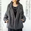 OTONA 40代 50代 60代 レディース 羽織り 軽アウター ゆったり 軽量 トラッド メール便不可アウター ゆるっと抜け感 軽やかツイード風ジャケット ライトアウター 長袖 軽い コート ノーカラー 大きいサイズ オーバーサイズ ポケット付 ミドル丈 春秋冬 秋冬 グレー ブラウン 9/21