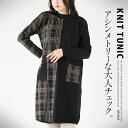 OTONA 40代 50代 60代 チュニックワンピース ニットチュニック 細見せ効果 黒 ベージュ オシャレ お出掛け キレイ目 カッコいい クール デイリー ラフ 大人女性 メール便不可トップス チュニック レディース ブラック 秋 冬 長袖 チュニック丈 ニット 薄手 チェック柄 アシンメトリー ボトルネック ゆったり 体型カバー アシンメトリーな大人チェック。ニットチュニック 11/9
