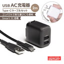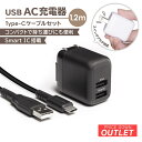 Smart IC搭載でかしこく充電 cp3b5b【アウトレット商品】 AC充電器 USB Type-A 2ポート + 超タフUSB Type-A to Cケーブル 1.2m セット 最大12W