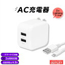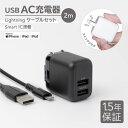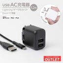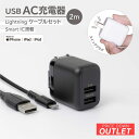 AC充電器 ライトニング ケーブル 2m コンパクト 折りたたみプラグ cp3b5b再値下げ【アウトレット商品】 USB Type-A 2ポート AC充電器 Lightningケーブル (2m) 付属