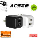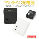 iPhone Android スマートフォン iPad タブレット モバイルバッテリー Wi-Fiルーター 充電 cp3b5b★11/13入荷★ 【アウトレット商品】 マルチAC充電器 USB Type-A×2 ACコンセント搭載 Smart IC 同時充電 合計2.4A 急速充電 ブラック ホワイト