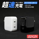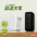 持ち運びに便利 コンパクト 折りたたみプラグ ノートPC充電可能 2台同時充電 Type-A 18W cp3b5b【アウトレット商品】 2ポート AC充電器 USB Type-C×1 Type-A×1 USB PD-PPS対応 最大65W出力 急速充電