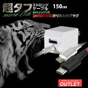 ロングブッシュ構造 折りたたみプラグ 150cm 1.5m Apple MFi認証品 cp3b5b再値下げ【アウトレット商品】 Lightning 超タフストロングケーブル AC充電器 一体型 1.5m ホワイト 急速充電対応