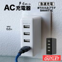 最大4台同時に「かしこく充電」できるAC充電器 cp3b5b【アウトレット商品】 4ポート AC充電器 Smart IC搭載 合計6.8A対応 急速充電 コンセント iPhone iPad Android スマートフォン(OL-ACU4F68S-WH)