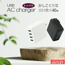 USB Type-A×4ポート 4台 複数 同時充電 cp3b5b【アウトレット商品】 AC充電器 USB Type-A 4ポート 合計最大出力 40W 8A ブラック ホワイト iPhone iPad Android スマホ タブレット 充電 かしこく充電対応