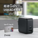 Type-C 2ポート 超速充電 コンパクト 持ち運びに便利な 折りたたみプラグ USB Power Delivery薄型 AC充電器 USB Type-C×2 PD対応 最大PD65W出力 薄さ14mm 窒素ガリウム GaN採用 1年保証 送料無料 【Web限定モデル】